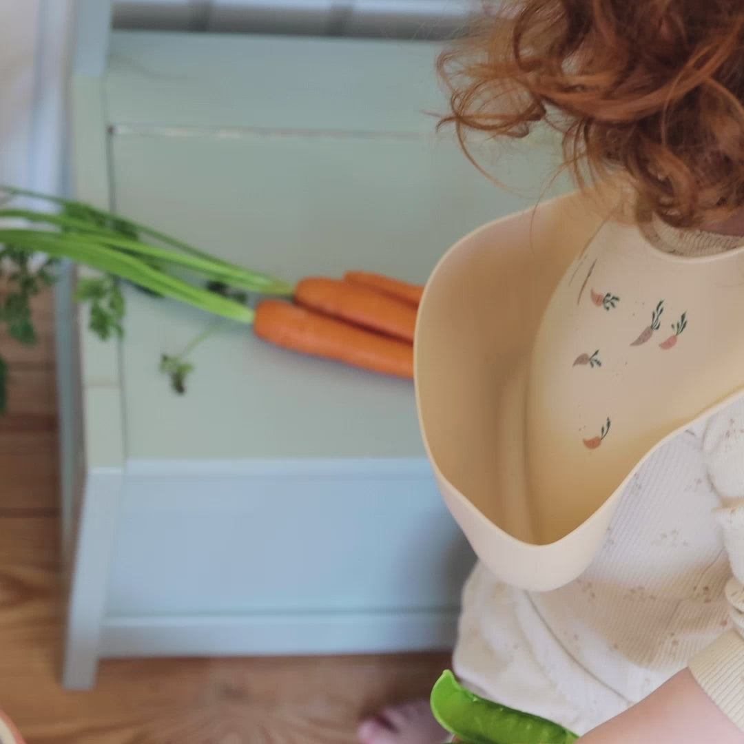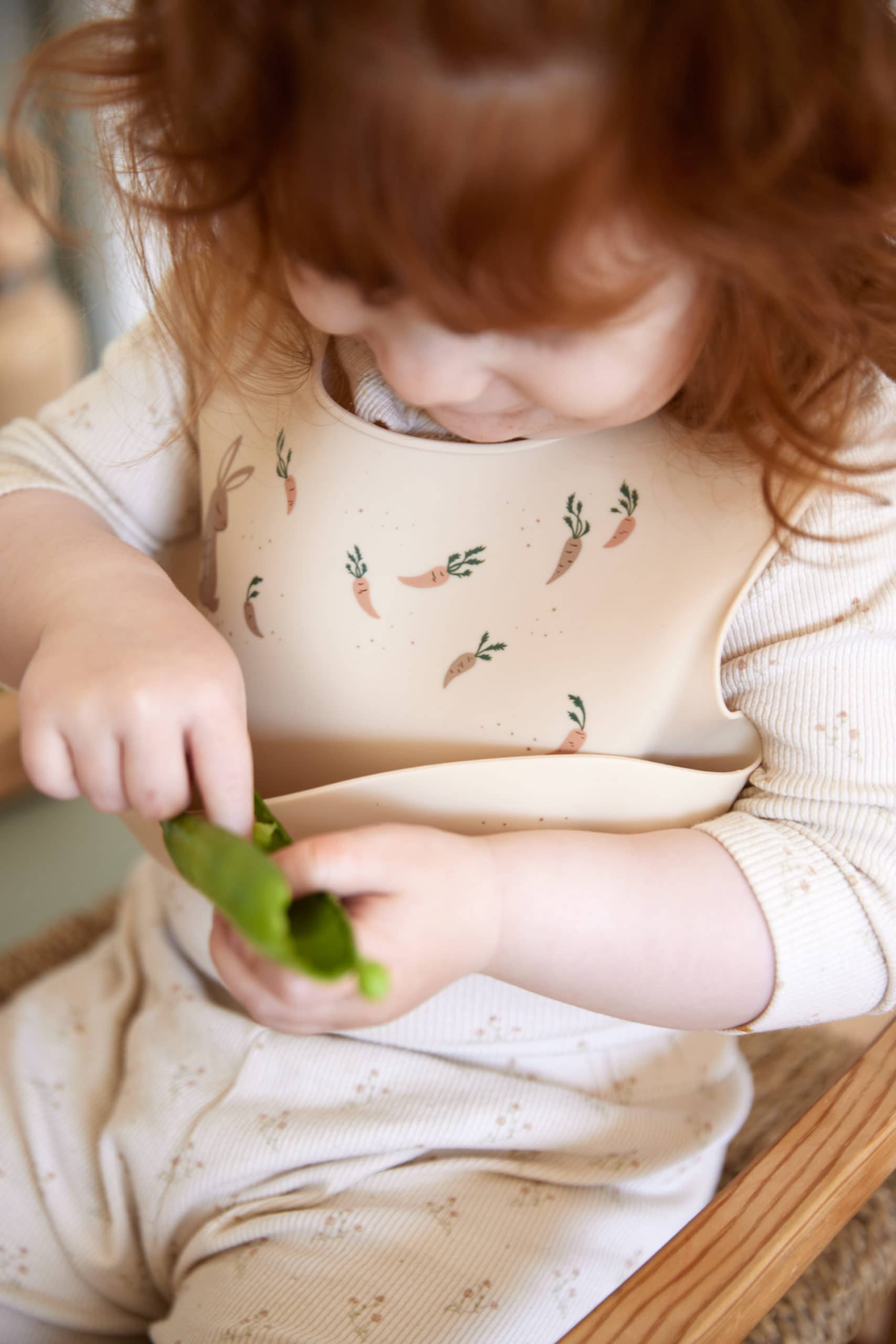 Aus flexiblem, strapazierfähigem 100 % Silikon gefertigt, ist das Lätzchen spülmaschinenfest und bruchfest.